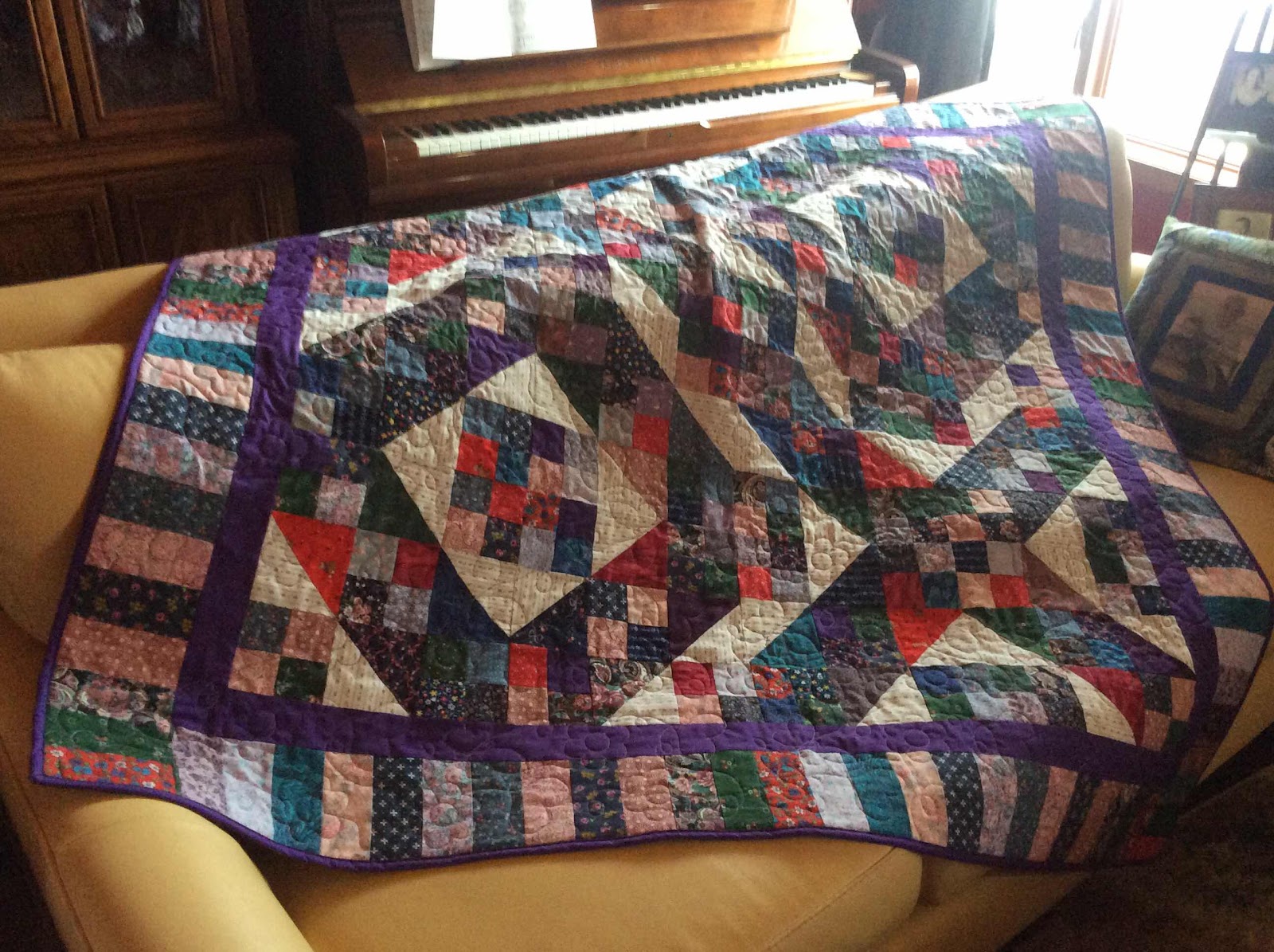 In between these projects I have finished a project that was another learning curve. I signed up for an online Craftsy course and used fabrics from mother-in-laws stash she had gifted to me. The colors are so scrappy and I didn’t think it was working so I had put the squares aside for a long time until the inspiration returned. As time goes past one learns new techniques and gained some experience. I think it’s so worth the wait...don’t you?
