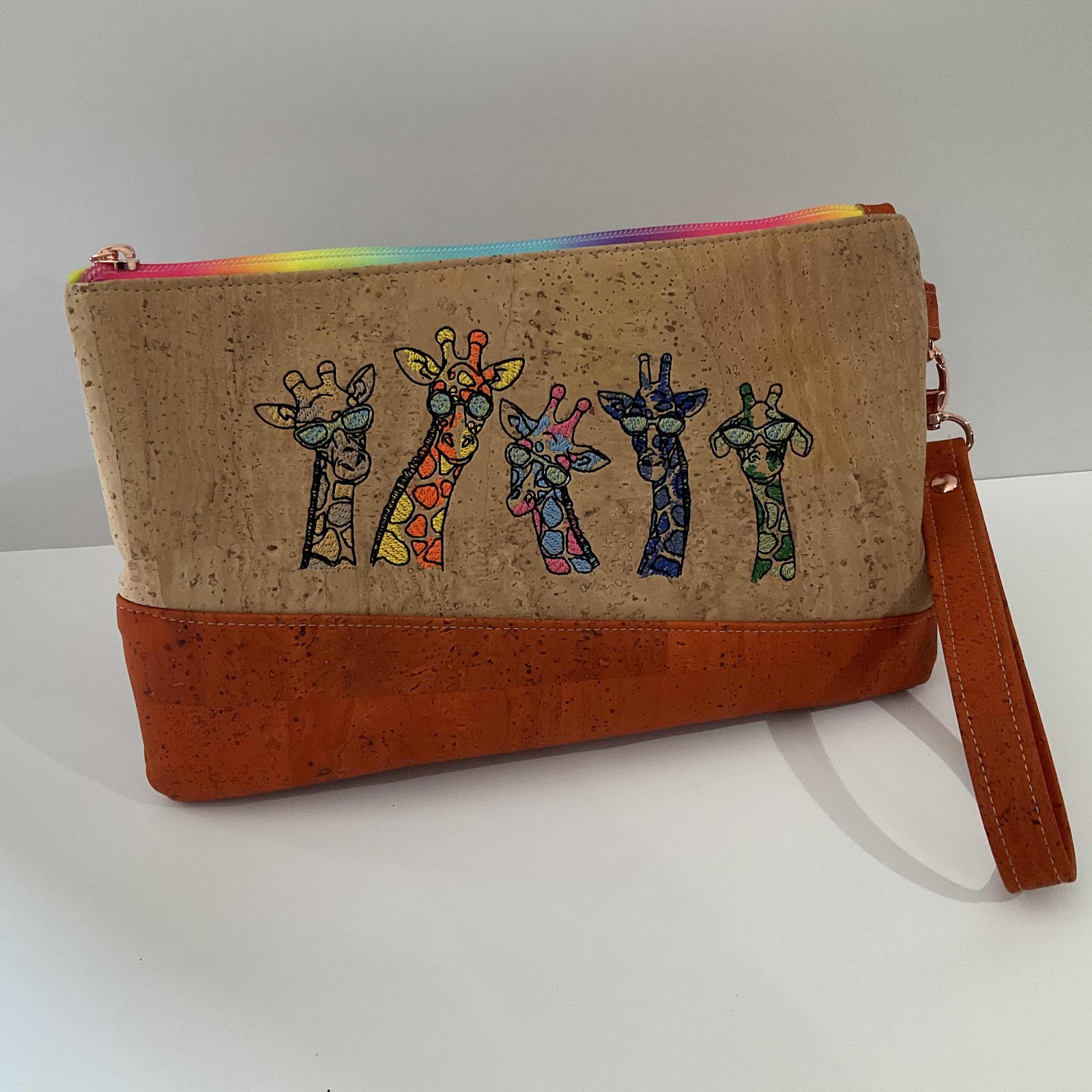 These giraffes are so darn cute. This is also a new pattern for me. Very similar to the Zippy Pouch but larger. Love the hand strap on the back. Will be making more of this one.